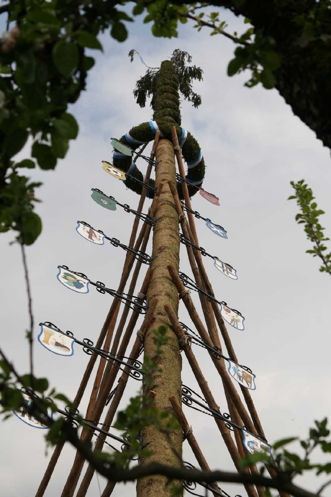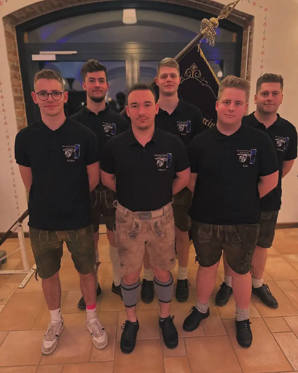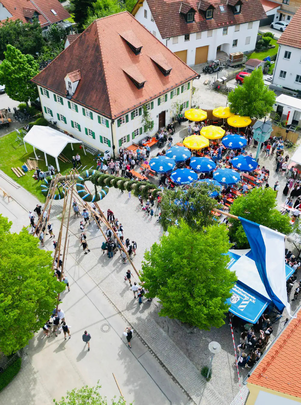 Seit der Vereinsgründung 1978 sorgt der Burschenverein dafür, dass in Adelshofen am 1. Mai wieder ein Maibaum aufgestellt wird. Anfänglich wurde der Baum im Klostergarten eingegraben. Seit 1981 fand das Spektakel beim damaligen Gasthaus Högenauer statt. Ab dem Jahre 2014 wurde von den Burschen eine neue Maibaumschiene neben dem renovierten Rathaus am Pschorrhof betoniert. Der Maibaum wird alle zwei Jahre am Vorabend des 1. Mai aus dem Wald geholt und die ganze Nacht über bearbeitet, geschmückt und bewacht. Wir legen bewusst Wert auf einen naturbelassenen Baum ohne Anstrich. Die Schilder bilden die ortsansässigen Zünfte ab. Nur mit Stangen, Seilen und Muskelkraft der Mithelfer wird der Baum am Vormittag des 1. Mai aufgestellt. Dazu sind viele Zuschauer aus der Ortschaft, aber auch aus der Umgebung anwesend. Für den musikalischen Rahmen sorgt die Adelshofener Blaskapelle. Wenn der Baum nach ca. zwei Stunden steht, wird feierlich die Bayernhymne gespielt und die bayerische Flagge aufgezogen. Nach den Ansprachen von Vorstand, Maibaumspender und Bürgermeister gibt es zum Mittagessen Schmankerl vom Grill und Bier vom Fass. Der Nachmittag wird bei schönem Wetter mit Blasmusik, Goaßlschnalzen, und Versteigerung des alten Maibaums gestaltet. Durch das Zusammenarbeiten beim Aufstellen des Baumes und dem geselligen Beisammensein am Nachmittag, kommen sich Einheimische und „Zuagroaste“ näher und die Dorfgemeinschaft wird dadurch auf ganz besondere Weise bereichert.